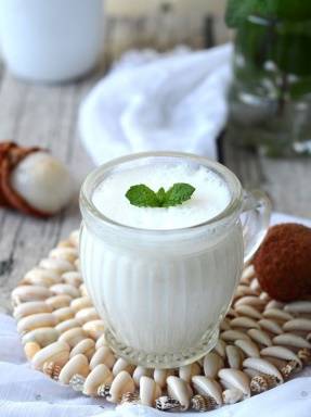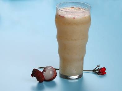 5、荔枝酸奶:荔枝去壳与核,放入破壁料理机中,加酸奶,打成汁,成品冷藏即可。
