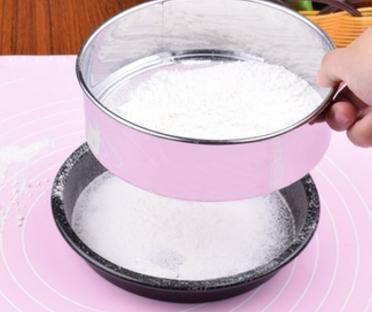 3、低筋面粉用筛子筛一下后倒入蛋黄中,然后用手动打蛋器从下到上的搅拌均匀。