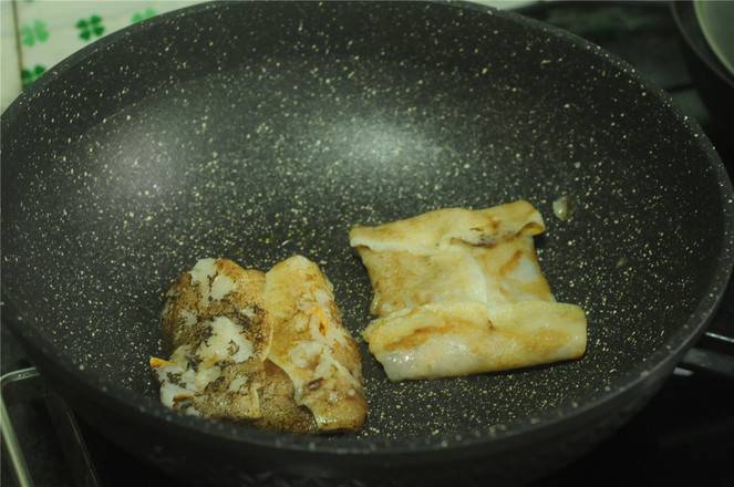 10、平底锅烧热,抹少许油,将包好的馅饼放入锅中,烙至两面金黄即可。