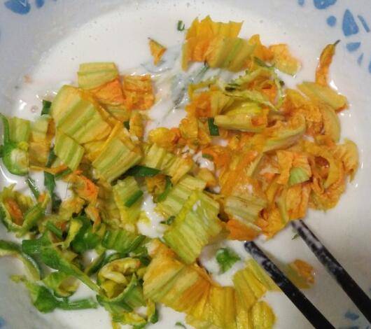 准备材料:窝瓜花150克、面粉60克、盐1勺。