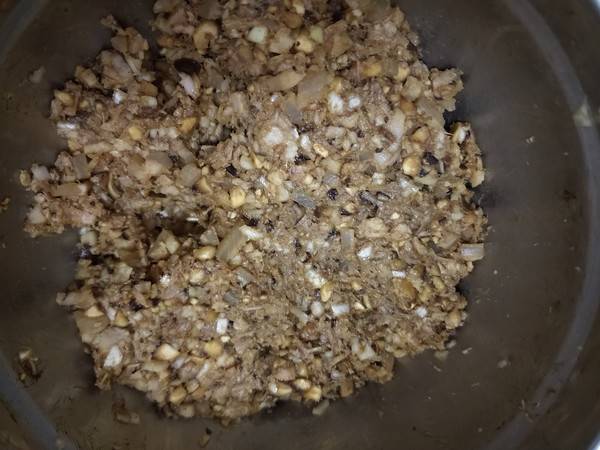 最佳答案:准备材料:水145克、中粉250克、酵母3.5克、五花肉320克、鲜香菇150克、葱1个、盐适量、黄豆酱1大勺、甜面酱1大勺。五花肉放高压锅里加花椒、大料、姜、葱煮,开火十分钟后关小火20分钟,冷凉取出切碎。大葱取葱白,香菇切碎。所有材料都放入盆中,加盐、黄豆酱和甜面酱,拌匀备用。