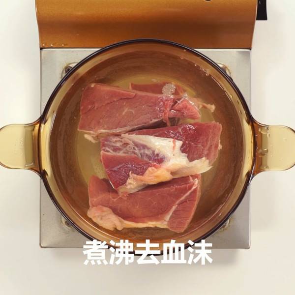 2、冷水放入生牛肉,煮沸去血沫。