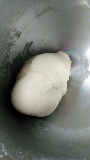 2、将黄油以外的材料揉成团,走筋后加入黄油继续揉到完全阶段。