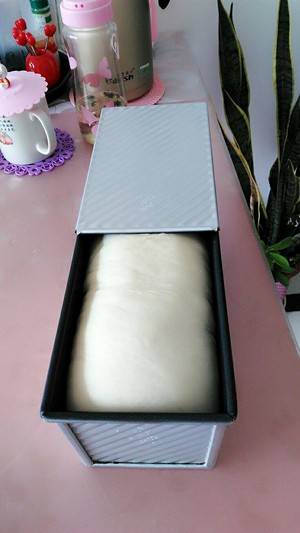 5、将面团放入吐司盒内。
