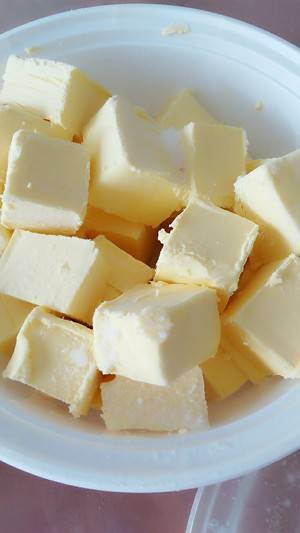 1、准备材料:盐3g、水190g、黄油20g、细砂糖10g、干酵母4g、高筋面包粉290g。