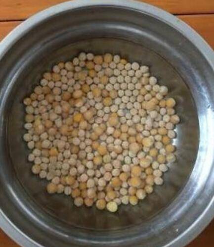 1、把干豌豆用水浸泡十到十二个小时后,捞出晾干豌豆外的水分,待用。