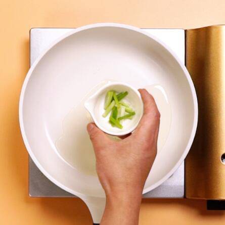 3、锅中倒油,倒入蒜片,葱段,姜片,大火爆香。