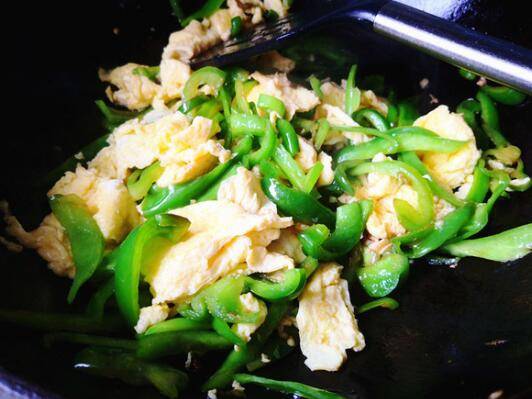 最佳答案:准备材料:辣椒300克、鸡蛋4个、酱油少许、食用油适量、盐少许。辣椒清洗干净,切成丝。鸡蛋打入碗里,加少许盐一起打散。锅热后放入食用油,开始炒鸡蛋,大火热油,鸡蛋下去先不动,稍微成形后用铲子搅动,炒至无液体状态即可出锅。