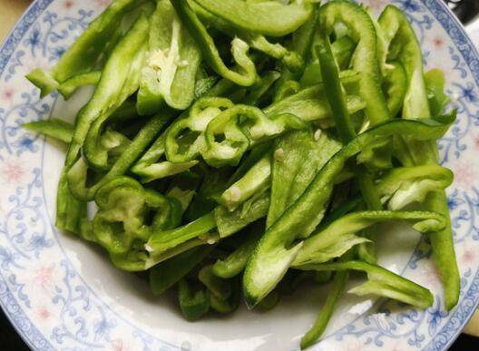 1、辣椒清洗干净,切成丝,能吃辣的里面的辣椒籽不用去掉。
