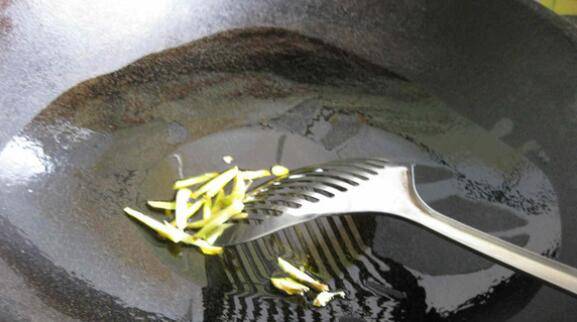 2、猪肉用淀粉和生抽抓抓,油热下姜丝爆香。
