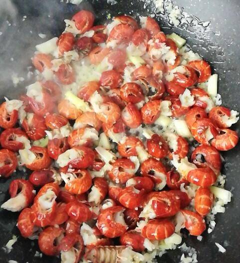最佳答案:准备食材:龙虾尾500克、小葱3根,姜末、蒜末、料酒、蚝油、蒜蓉酱适量。葱白,葱绿切段分开,姜和蒜切末,虾尾冷水下锅,水开后焯一分钟左右,捞出,用水冲掉浮沫,沥水。锅中放油,下入葱姜末,葱白段煸香,倒入龙虾尾翻炒。