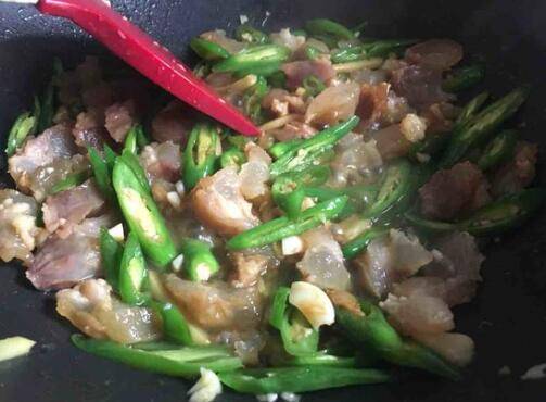 最佳答案:准备材料:牛蹄筋300克、青椒8个、大蒜5瓣、生姜20克、八角3个、桂皮1根、香叶3片、香葱2根。牛蹄筋洗净,牛蹄筋倒入电饭煲内胆中,继续放入生姜片、香叶、八角、桂皮、2勺料酒。启动电饭煲煮蹄筋功能,选择压力口感,点击启动,自然放气后取出。辣椒切斜块,生姜、大蒜切碎备用。
