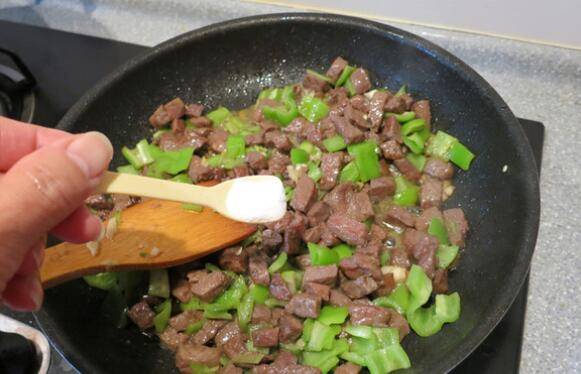 4、待肉丁7成熟时,放入适量的黑胡椒粉,最后放入盐翻炒几下就可以出锅了。