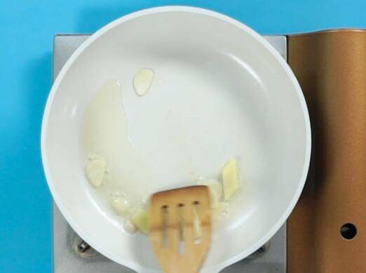2、锅中倒入食用油、蒜、姜,大火爆香。