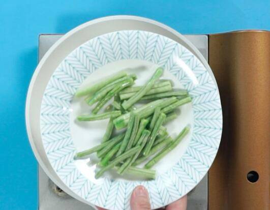 准备材料:豆角200克、猪肉50克、食用油3毫升、大蒜1瓣、姜片3克、辣椒适量、花椒1克、豆瓣酱5克、生抽3克、白砂糖3克、盐2克、鸡粉3克。