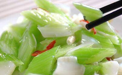 3、锅中放少许油烧热,放焯好的西芹和百合翻炒几下,放适量盐调味翻炒均匀即可。
