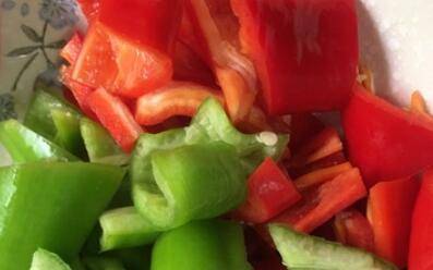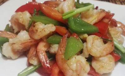 用料:虾,青红椒,胡椒粉,料酒,姜,盐。