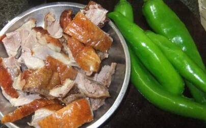 用料:烧鸭,尖椒,蒜蓉,生抽,蚝油。