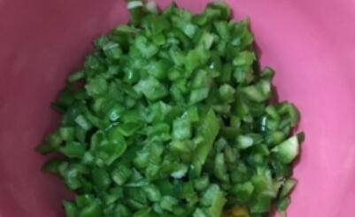 3、煎至两面金黄盛出;锅中留底油放入青椒沫去炒。