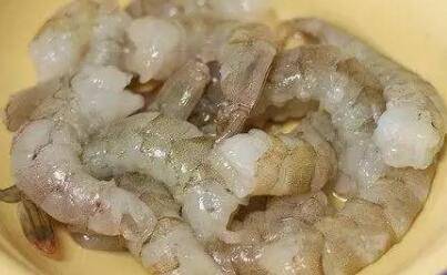 2、锅中倒水烧开,放虾仁煮至变色捞出冷却,背部切开。