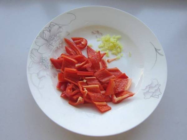 3、红辣椒洗净切块,姜切末。