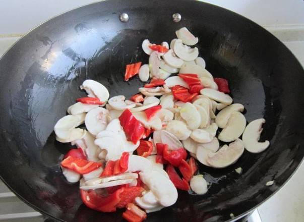 6、锅中下圆菇翻炒均匀。