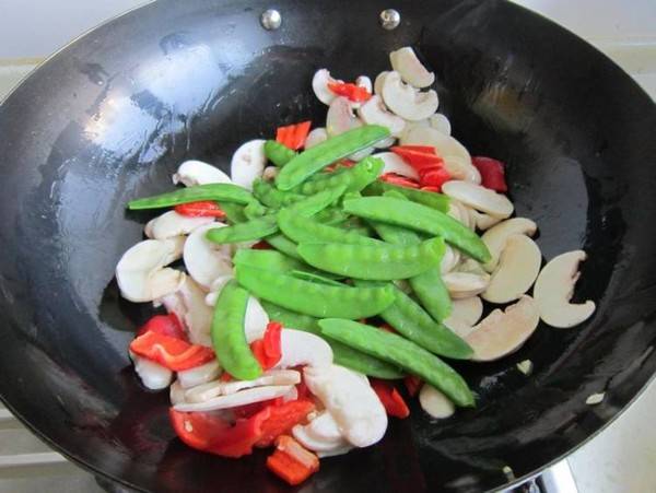 8、加荷兰豆翻炒。