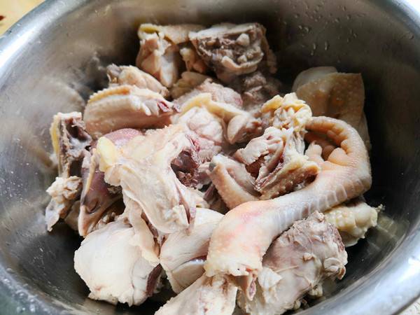 3、捞出鸡块过凉水,清洗干净,沥干水分。