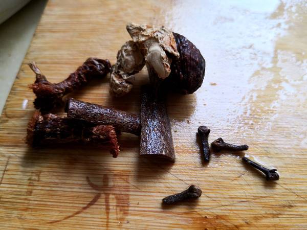 4、将丁香等材料一起用清水冲洗干净备用。