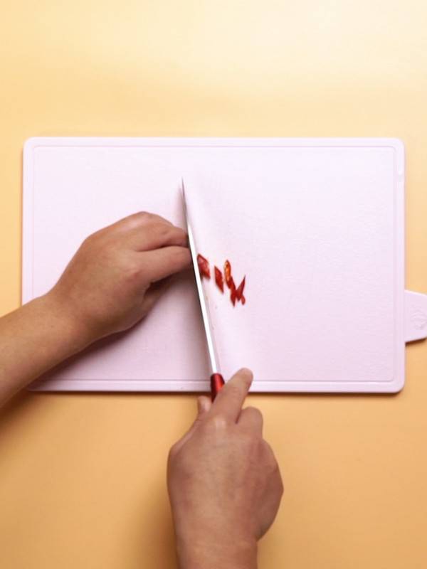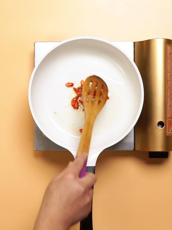 5、锅中倒入食用油、蒜末、小米椒,大火爆香。