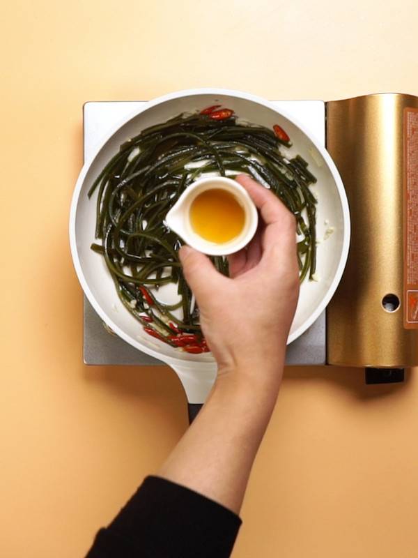最佳答案:准备材料:海带丝100克、蒜末5克、小米椒10克、清水500毫升、食用油5毫升、盐2克、鸡粉2克、香油5克。蒜末备用,小米椒切段。清水用大火煮沸。倒入海带丝,焯水两分钟。锅中倒入食用油、蒜末、小米椒,大火爆香,再倒入海带丝,翻炒均匀。最后倒入盐、鸡粉、香油,翻炒均匀即可。