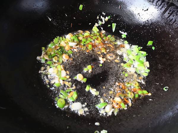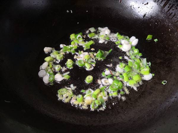 5、锅里放适量的食用油,油热后放入葱花姜末爆香。