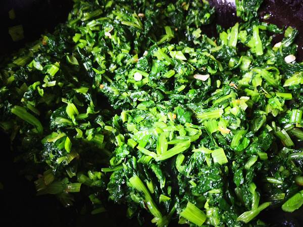 7、再把小白菜放入锅里翻炒,出锅前加入少许盐调味即可。