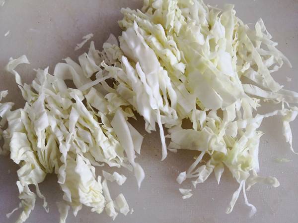 6、卷心菜选用的心的部分,清洗干净,切丝备用。
