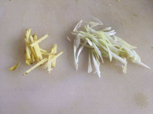 5、葱姜切丝。