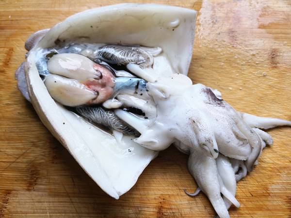3、拿掉内脏后,去除墨鱼壳。