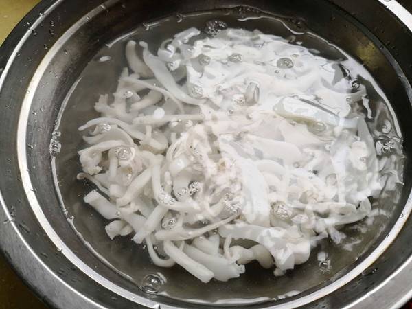 8、投入凉水中后沥干水分备用。