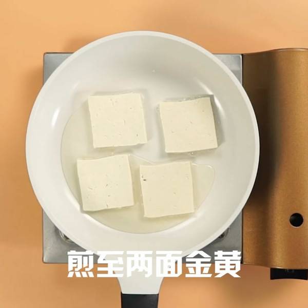 4、锅中倒入食用油,放入豆腐煎至两面金黄。