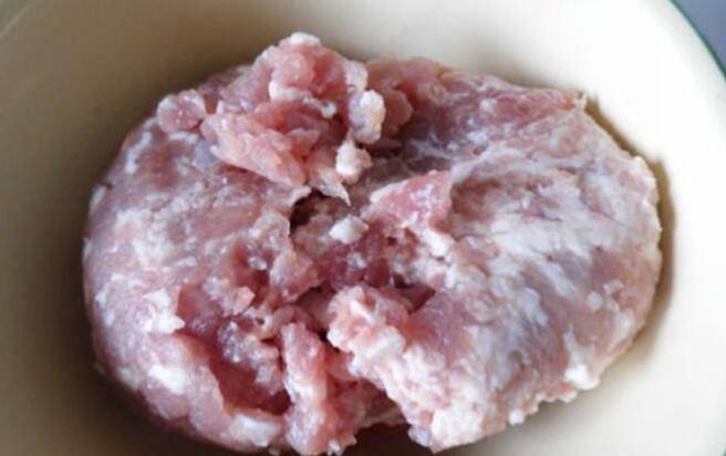 1、猪肉一块切碎,肥瘦比例3:7最好。