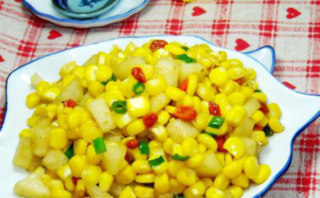 最佳答案:准备材料:甜玉米1根、香梨1个、枸杞1小把、色拉油适量、食盐少许、水30毫升、小葱2根。甜玉米切玉米粒,香梨削皮切小丁,枸杞洗净,葱切花。热油锅,放进玉米粒,煽炒1分钟后放一点盐,加入30毫升的清水。玉米煮至水将干时,加入枸杞,翻炒几下。加入香梨丁和葱花,翻炒均匀即可。