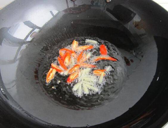 5、加蒜苗少许盐一起翻炒,加味级鲜。