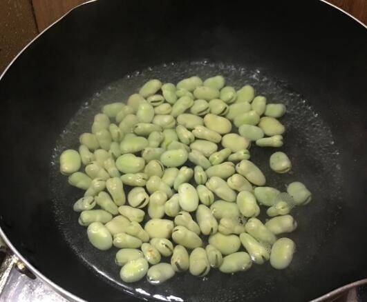 1、买回来的带壳蚕豆,去掉外壳,锅中加入清水大火烧热,下入蚕豆煮2分钟捞出,用冷水冲洗后去皮。