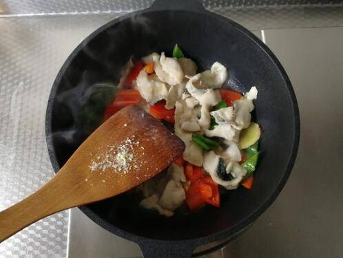 4、翻炒到鱼片基本变色变熟,关火装盘。