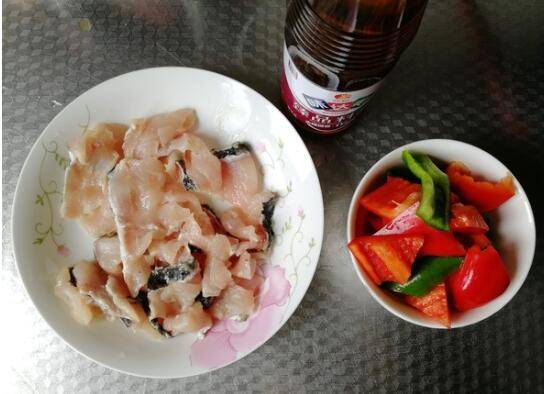 准备材料:鱼片300克、青椒半只、红椒半只、玉米油30毫升、料酒15毫升、姜片2片、盐1勺、蛋清1个、蛋清、生粉10克、半勺鸡精。
