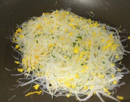 最佳答案:准备材料:细粉丝1把、绿豆芽10克、蛋黄1个、盐、葱、油。细粉丝用温水或冷水泡软,绿豆芽去头去尾只留白梗洗净,焯水备用。剪刀剪成小段放入盘中备用。将蛋黄加少许盐打散搅拌均匀。锅烧热后倒入少许冷油,倒入蛋黄液,小火慢炒至细小的碎花,然后盛出备用。