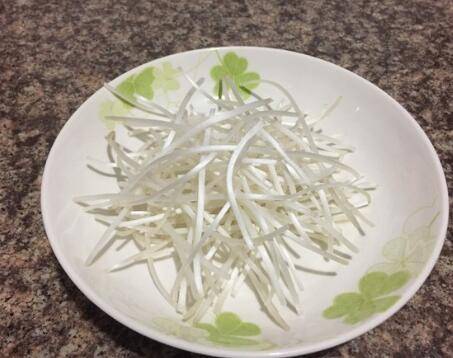2、绿豆芽去头去尾只留白梗洗净,焯水备用。