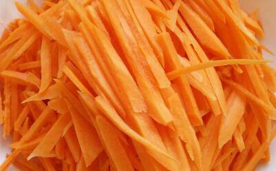 2、胡萝卜切丝,蘑菇切丝,洋葱切丝。