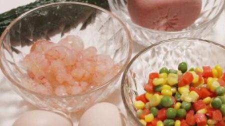 最佳答案:黄瓜切丁、香肠切丁、鸡蛋打散、香葱切碎备用。虾仁中加半只蛋清、一小勺淀粉抓均后腌制10分钟备用。锅中加适量清水,水烧开后加将玉米、青豆、胡萝卜倒入锅中焯水备用。将虾仁、玉米、青豆等分别在油锅中炒熟。将所有材料倒入锅中,滴少许香油翻炒匀均即可出锅。