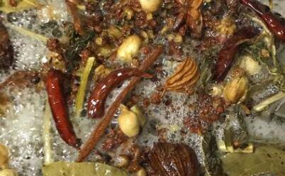 材料:菜油500ml,牛油300克,干辣椒100克,花椒50克,生姜50克,大蒜50克,冰糖50克,其他香料适量,豆瓣适量。
