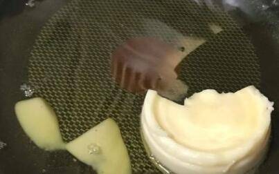 1、菜油烧热下牛油融化;放入生姜、大蒜和干辣椒。
